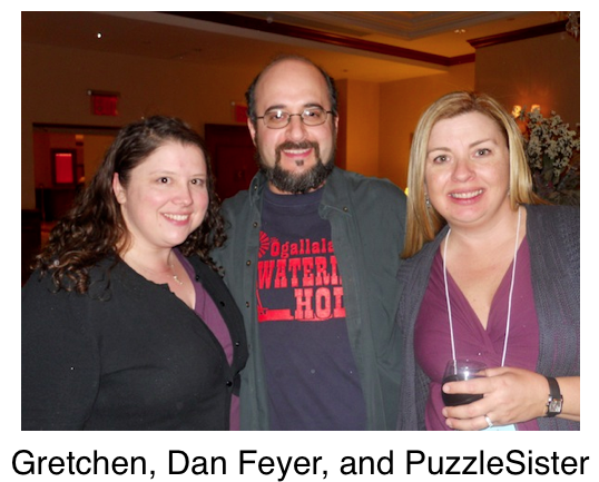 By the time the evening rolled around, we had ourselves a nice little puzzle gang that included Deb, PuzzleSister, Doug Peterson, Amy Reynaldo, Sam Donaldson,